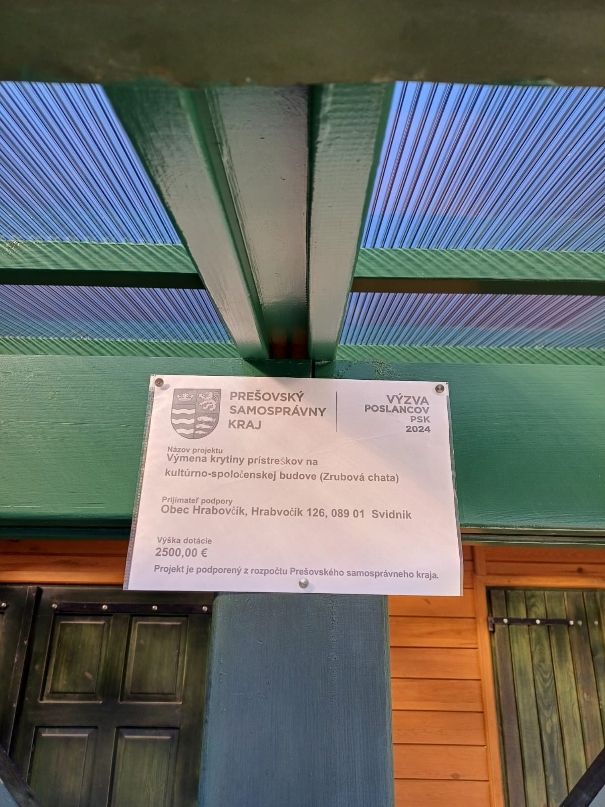 Medializácia projektu-Výmena krytiny prístreškov na kultúrno-spoločenskej budove(Zrubová chata)